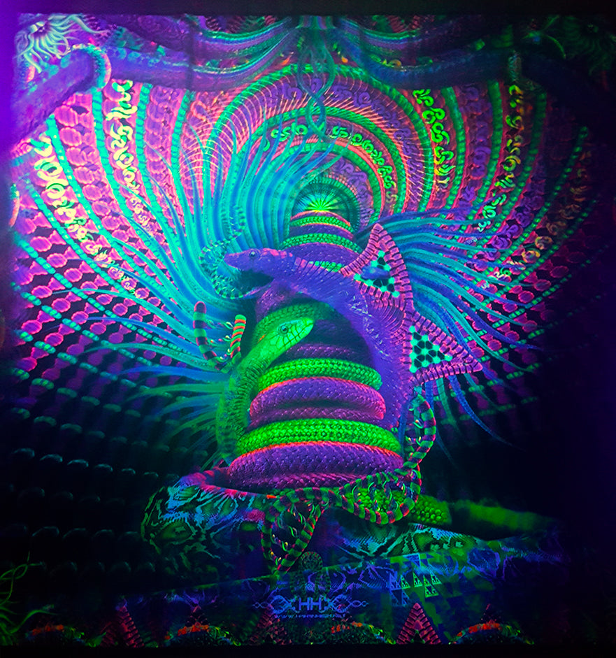 The art I create is a reflection of a lifetime of practice, study and distilled experiences — inspired by the organic technology of nature, ancient mythologies, and the infinite complexity of the tryptamine trance state.