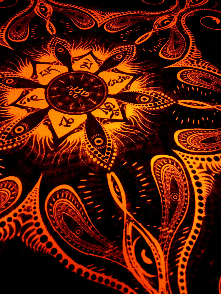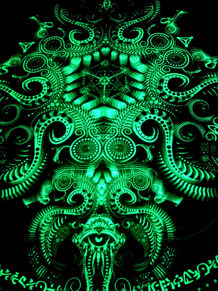 Designed to explode under UV and black light — our neon series channels the frequency of tryptamine visionary states into wearable artifacts, festival environments, and electric domestic portals.